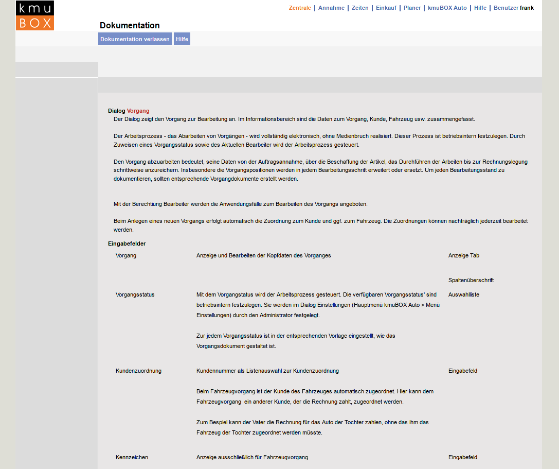 - Dialoghilfe zum aktuell aufgerufenen Dialog in kmuBOX® Auto aufrufen