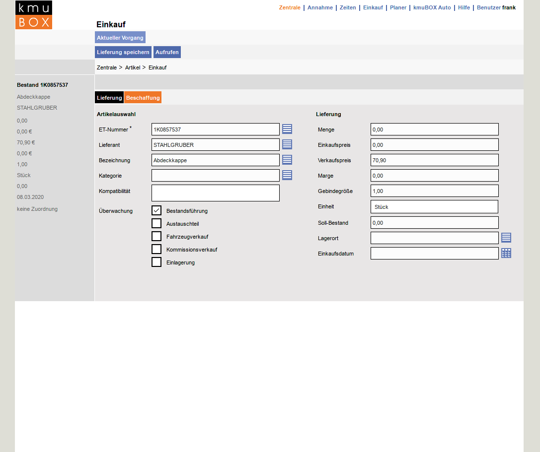Materialbestellung, Wareneingang und Artikeldaten einpflegen