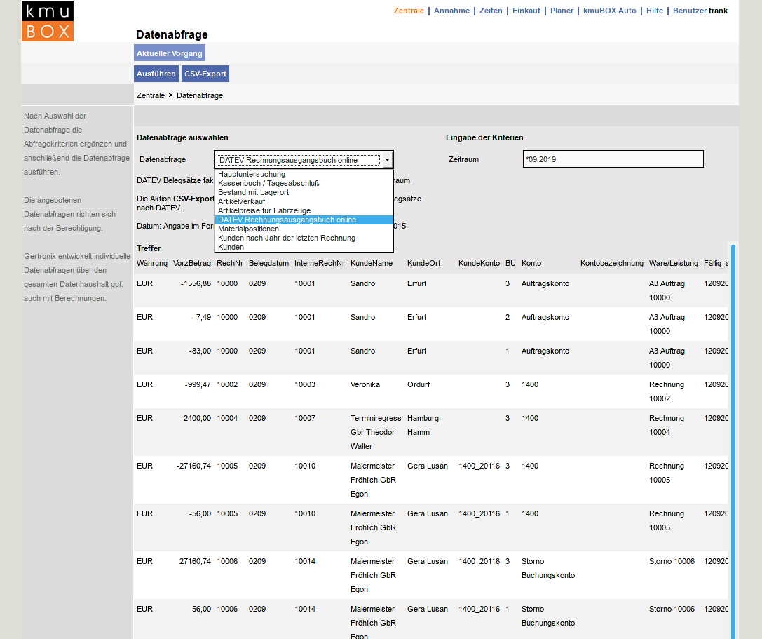 - Übertragung an Steuerberater mit DATEV Rechnungsausgangsbuch online