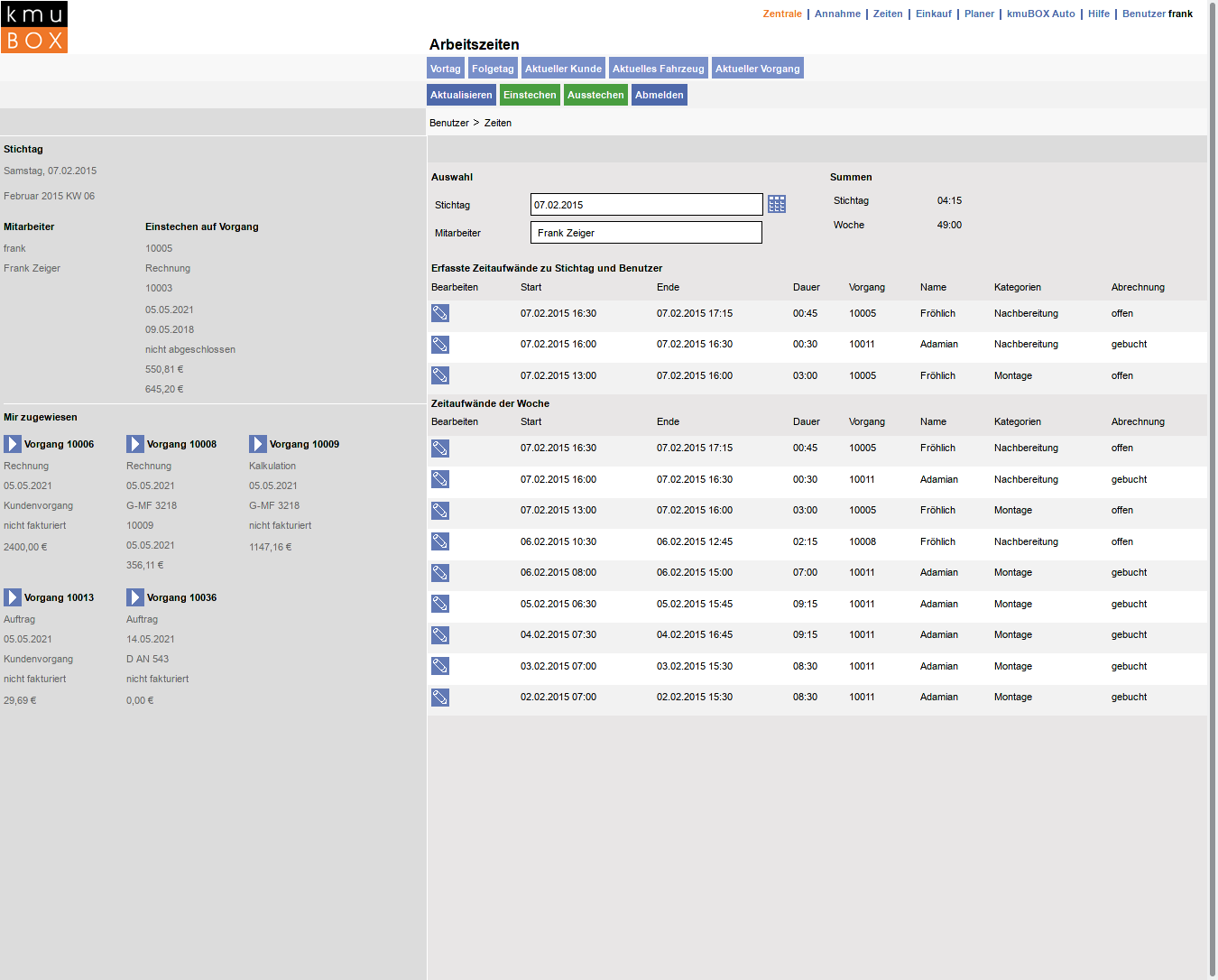 - Zeitaufwände werden am Vorgang durch Ein- und Ausstechen des Mitarbeiters erfasst. Jeder entstandene Gesamtaufwand ist bezogen auf die ausführenden Mitarbeiter dokumentiert.